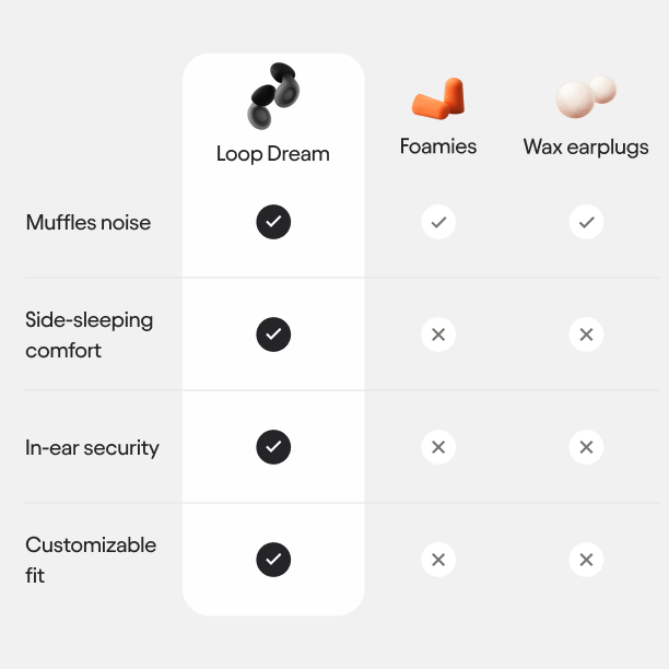 Prepare for a restful night’s sleep with Loop Dream earplugs. Experience fewer noisy distractions for uninterrupted nights, whether you’re side-sleeping, muffling a snoring partner – or both.