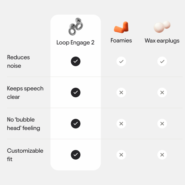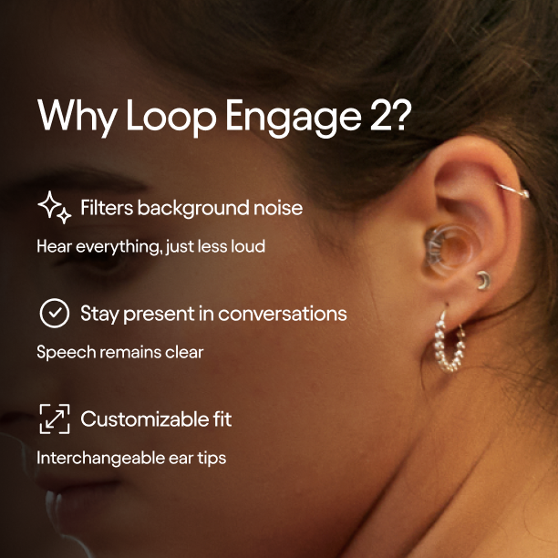 Our new and improved Loop Engage 2 earplugs offer discreet relief from everyday noise for more clear and focused conversations.